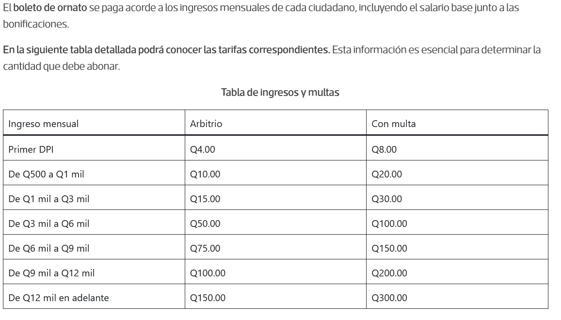 Como todo año en el mes de febrero como empresa nos corresponde descontar el valor de Boleto de Ornato 2025 y pagarlo a la municipalidad. Todos los que necesiten boleto de un Municipio y no de la Ciudad pueden comprarlo atendiendo a la siguiente tabla y traerlo a mas tardar el lunes 17 de febrero. De lo contrario se incluirá en la compra general. Considerar que es sobre el TOTAL de sus ingresos, sean estos bonos por meta, bono decreto + sueldo base. Si por alguna razón lo compran por menor valor y hay reparo de la municipalidad, descuentan el valor completo + multa. Agradeciendo de antemano su atención.