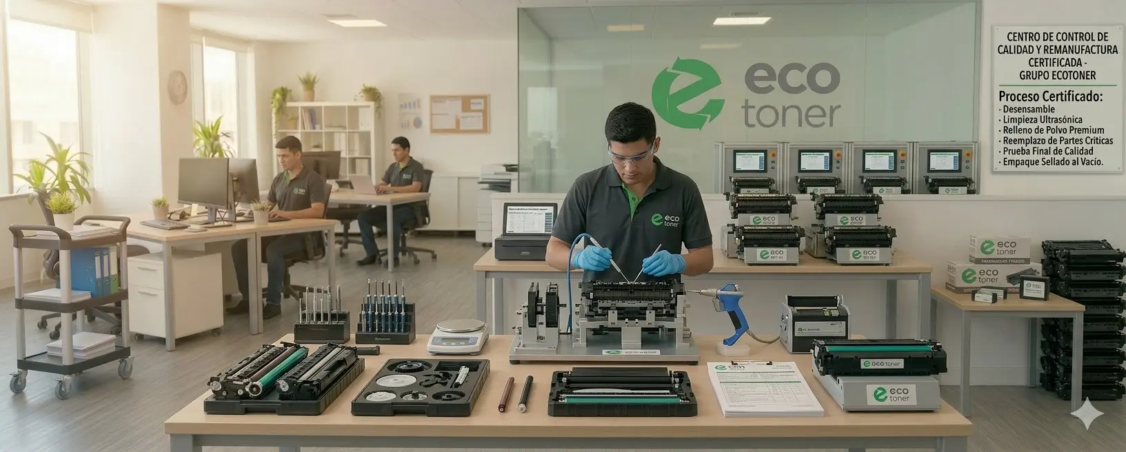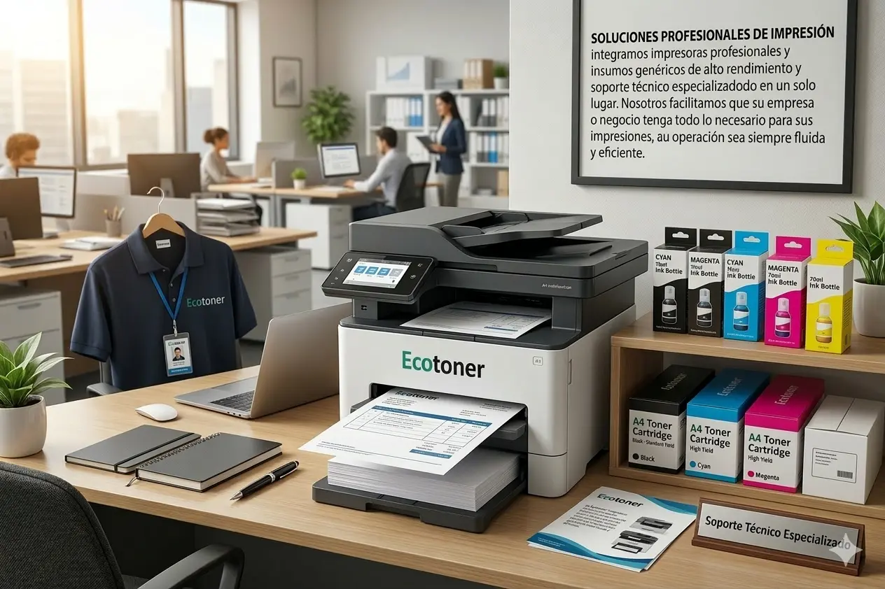 En Ecotoner integramos impresoras profesionales, insumos de alto rendimiento y soporte técnico especializado en un solo lugar. Nosotros facilitamos que su empresa o negocio tenga todo lo necesario para sus impresiones, garantizando que con nuestro respaldo su operación sea siempre fluida y eficiente.